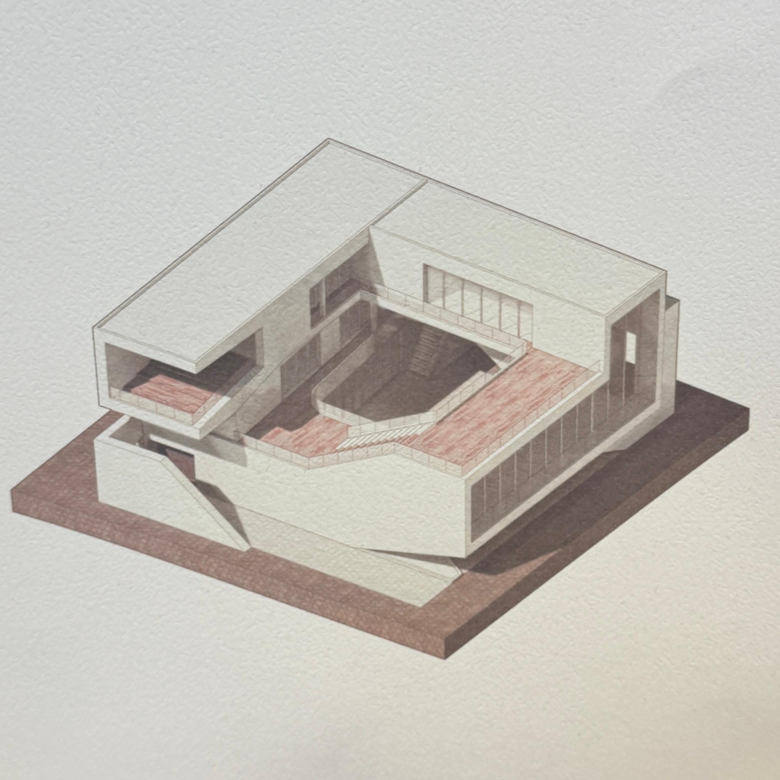 거대한 매스를 캔틸래버구조로 공중에 띄어둬서 중정으로 진입하기에 개방된 느낌을 줍니다.
