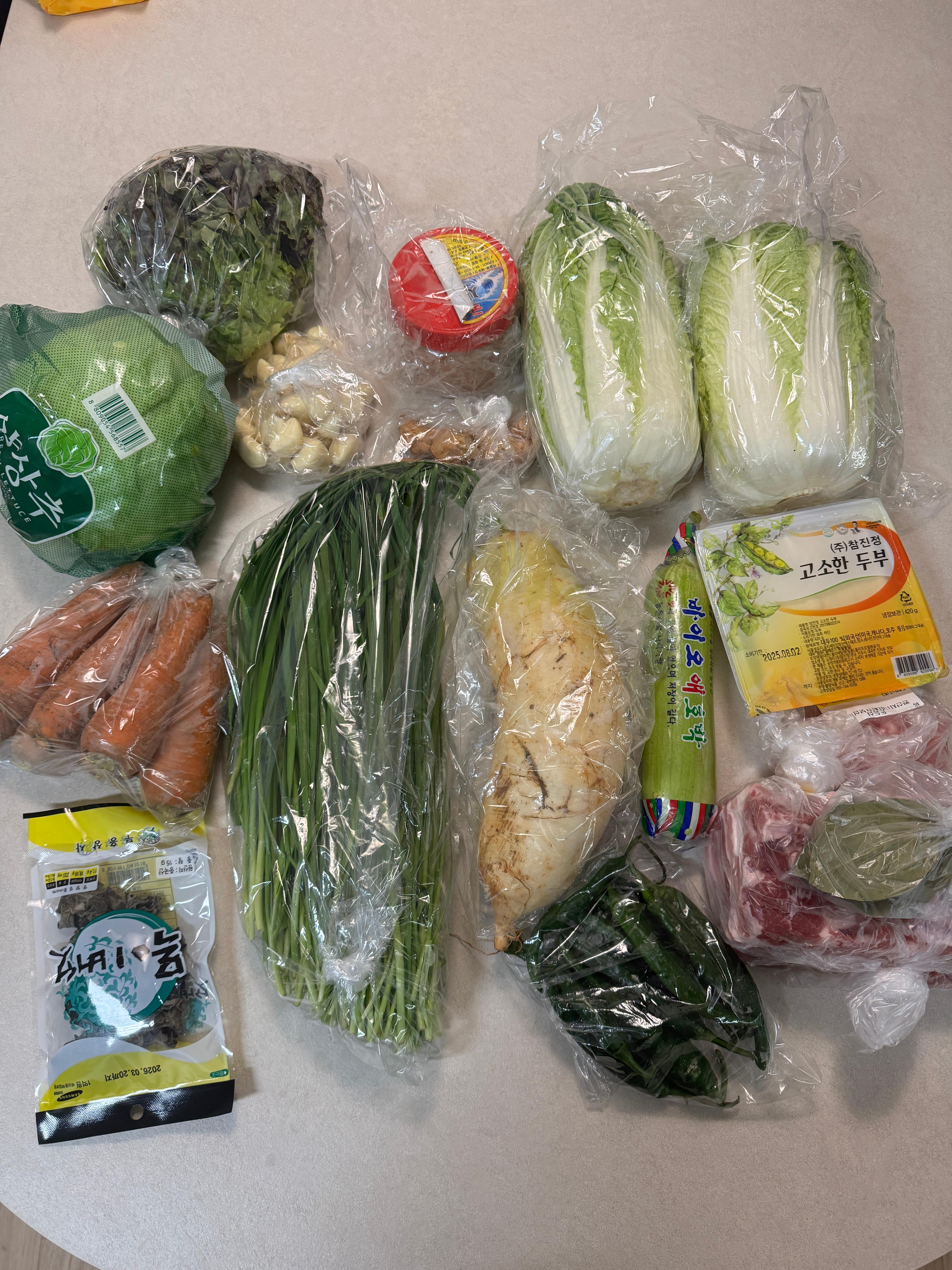 김치하나까지 전부 직접 만들었기 때문에 무와 배추도 구매했고,